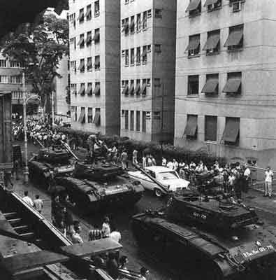 The CIA's extensive propaganda campaign against President Joao Goulart culminated in a U.S.-backed military coup toppling the three-year-old left-wing government. Paulo Freire, who uses literacy programs to "conscientize" the poor, is imprisoned, then exiled. General Costa e Silva, the newly installed head-of-state, allows the CIA to establish an irregular political police apparatus which serves as the prototype for the U.S. "Office of Public Safety" (OPS), the mechanism through which Latin American death squads are created on a wholesale basis later in the decade. In November, 200 are jailed in Rio Grande do Sul for allegedly plotting leftist insurrection in conjunction with ousted Goias Governor Borges and ex-deputy Leonel Brizzola.