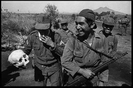 "People are not just killed by death squads in El Salvador; they are decapitated and then their heads are placed on pikes and used to dot the landscape. Men are not just disemboweled by the Salvadoran Treasury Police; their severed genitalia are stuffed into their mouths. Salvadoran women are not just raped by the National Guard; their wombs are cut from their bodies and used to cover their faces. It is not enough to kill children; they are dragged over barbed wire until the flesh falls from their bones while parents are forced to watch. The aesthetics of terror in El Salvador is religious." —Father Daniel Santiago