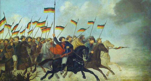 The beginning of the revolt was not very different from that of the Cabanagem, in the sense that it turned around the reaction of local liberals against the formation of the caramuru Sociedade Militar in 1833 and against a president appointed by the regency. The president, who suspected secessionist plans among the local leaders, was overthrown in September 1835. Under the next president, himself a rich estancieiro, factions coalesced and in February 1836 open war broke out. In September 1836 the farroupilhas proclaimed the independence of the province under a republican government, although they were not able to keep control of the capital.In 1839, with the help of a small naval task force organized by the Italian revolutionary, Giuseppe Garibaldi, they invaded the neighbouring province of Santa Catarina, where a shortlived republic was also proclaimed. The fight dragged on for ten years until an armistice was agreed in March 1845.